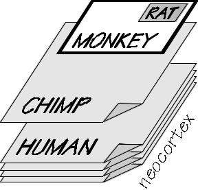 that a rat’s cortex takes up about the area of a large postage stamp, a monkey’s