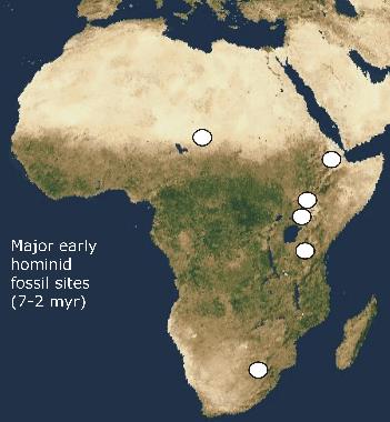 up north, especially a series of fossil sites ranging from Laetoli, 3