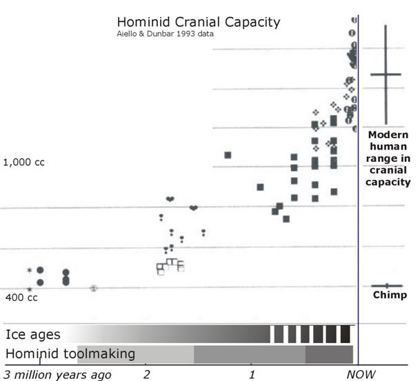 possibility for why brain size starts increasing faster. Perhaps techniques