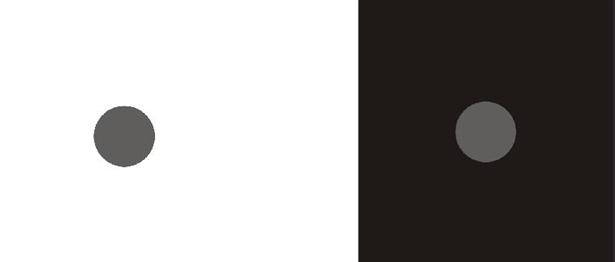 Framing is only protostructure and it is a commonplace of perception, shared by the other animals and surely by Homo sapiens back before the transition. The surroundings make a big difference. The spots are the same shade of gray, but the square black surround lightens our perception of the surrounded spot. In the moon illusion, the moon looks a lot larger when framed near the horizon.