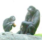 Bonobos (shown here; left bank of the Congo) are more lightly built than the otherwise similar chimpanzees (not shown; found in East, Central, and West Africa).