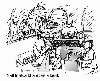 1 The neurosurgery operating room is a little unusual even from the outside. On its swinging doors today hangs a prominent sign proclaiming, "Quiet Please, Patient Awake." Most surgical patients get to sleep while the OR crew works, hence the reminder to save the OR jokes for another day. The OR door is a heavy, solid door that does not push open easily except by the surgeon's trick of backing into it. Surgeons have to do that anyway, to keep from touching it with their dripping hands, fresh from the scrub sink outside. Nondripping types sometimes just heave with their shoulders.
