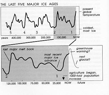 THANKS TO VARIATIONS in the earth's axial tilt and the drift in the season when perihelion is reached, we've had 100,000-year-long major climatic cycles to shrink and expand the temperate zone populations. Of which, more later.